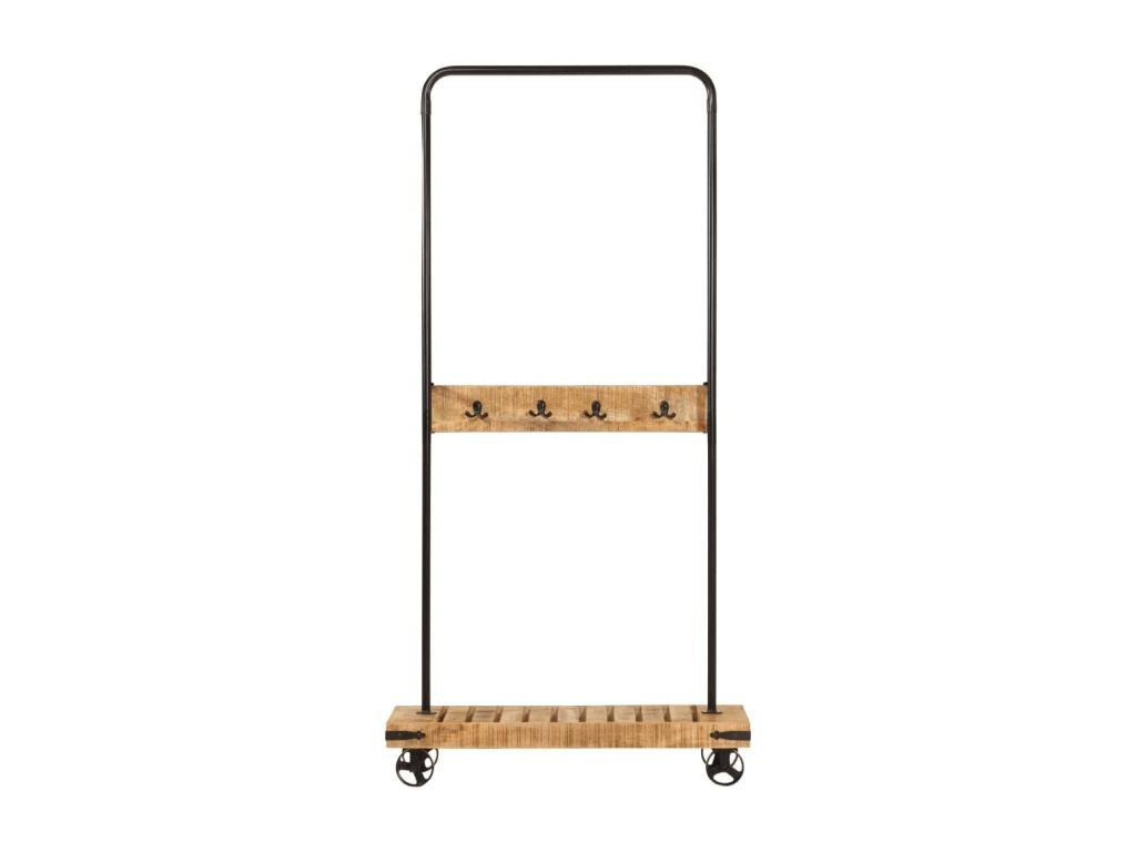 Porte-vêtements et roues 90x35x190 bois de manguier et fer