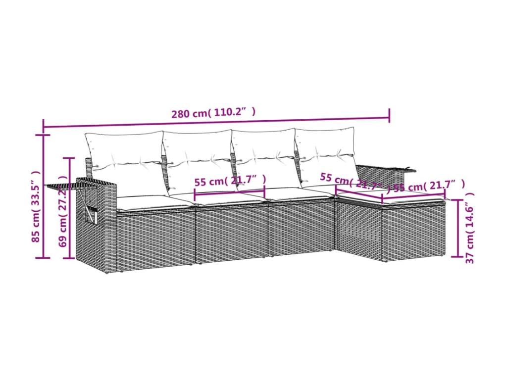 Salon de jardin 5 pièces avec coussins gris résine tressée
